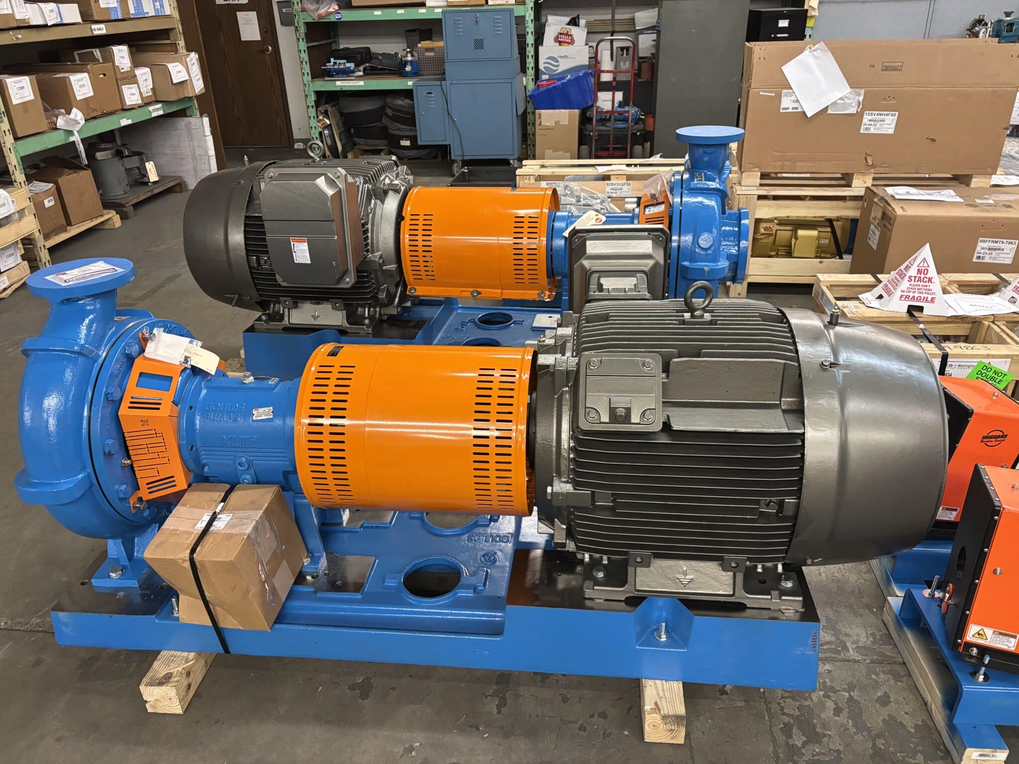 The pump units were assembled from kits with mechanical seals installed, air tested, and mounted on baseplates with motors and couplings, and laser aligned prior to complete unit shipment from the Edelmann Shop in Plymouth, MN.