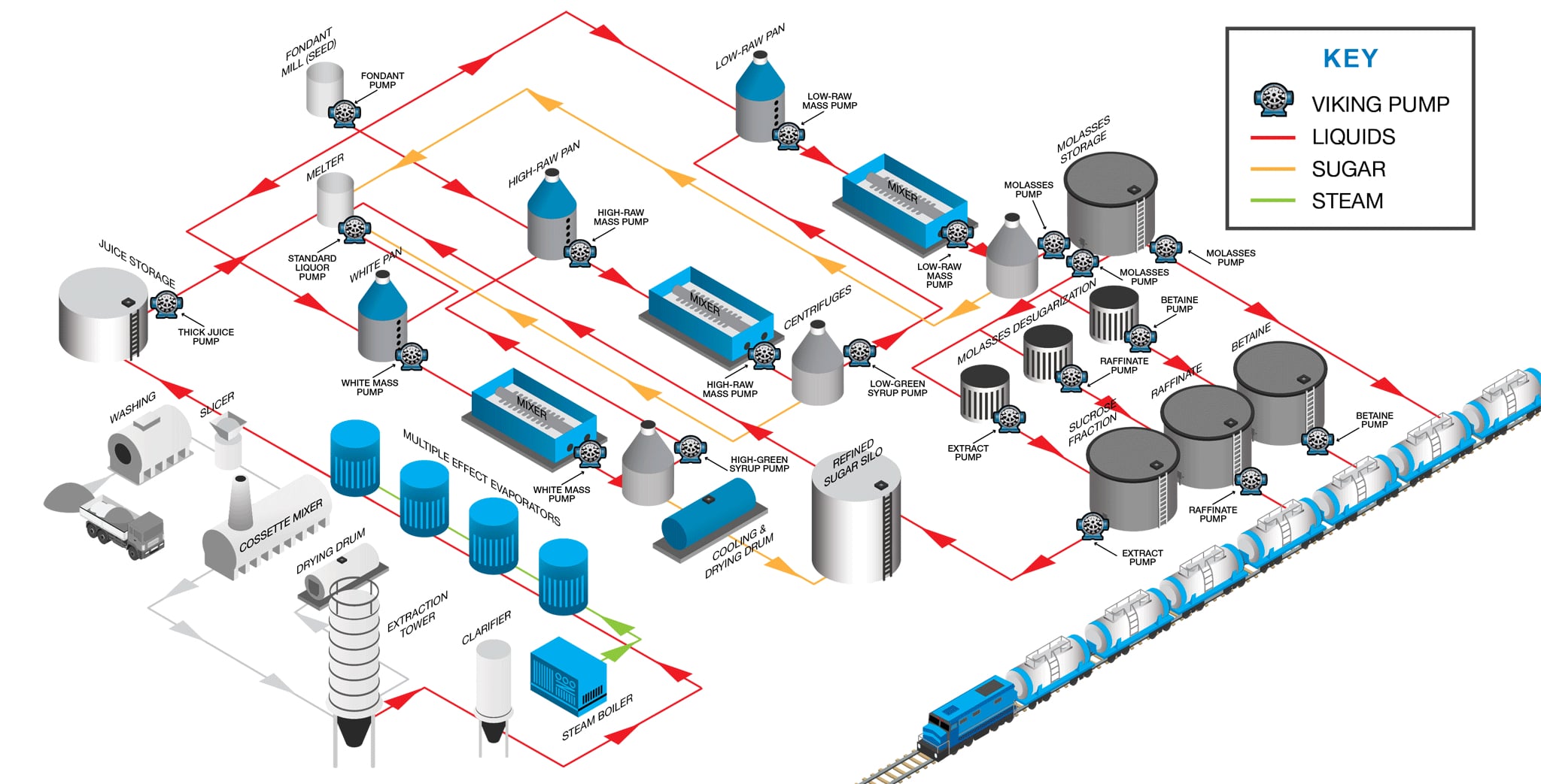 Viking Pump has been a trusted name in the sugar industry for decades, providing reliable positive displacement pumps designed to handle the thick, sticky, and abrasive fluids found throughout sugar production.
